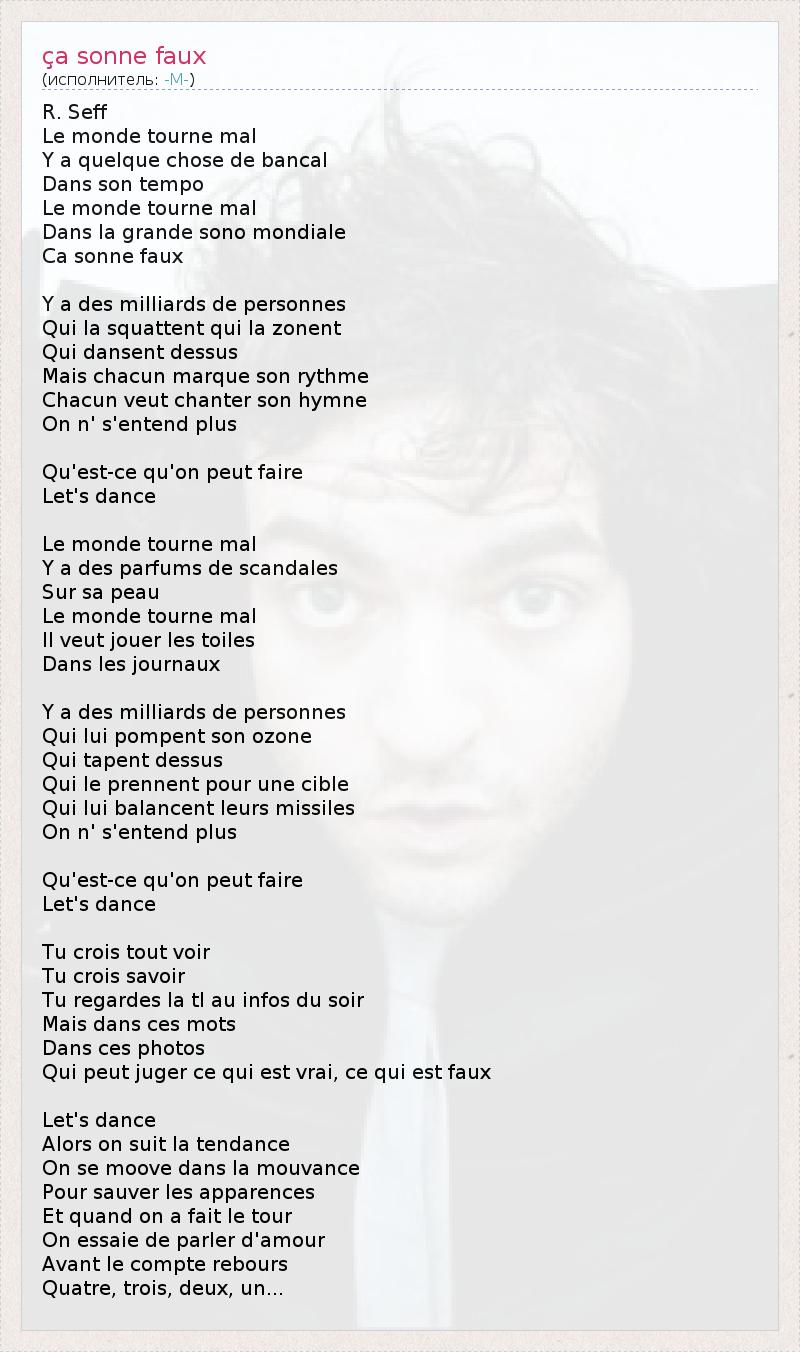 А как ты думаешь, о чем песня "ça sonne faux" ?