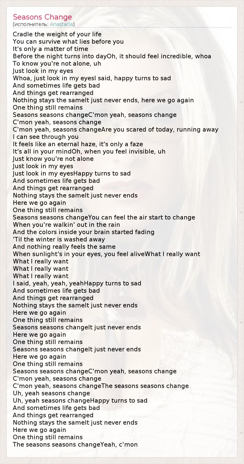А как ты думаешь, о чем песня "Seasons Change" ?