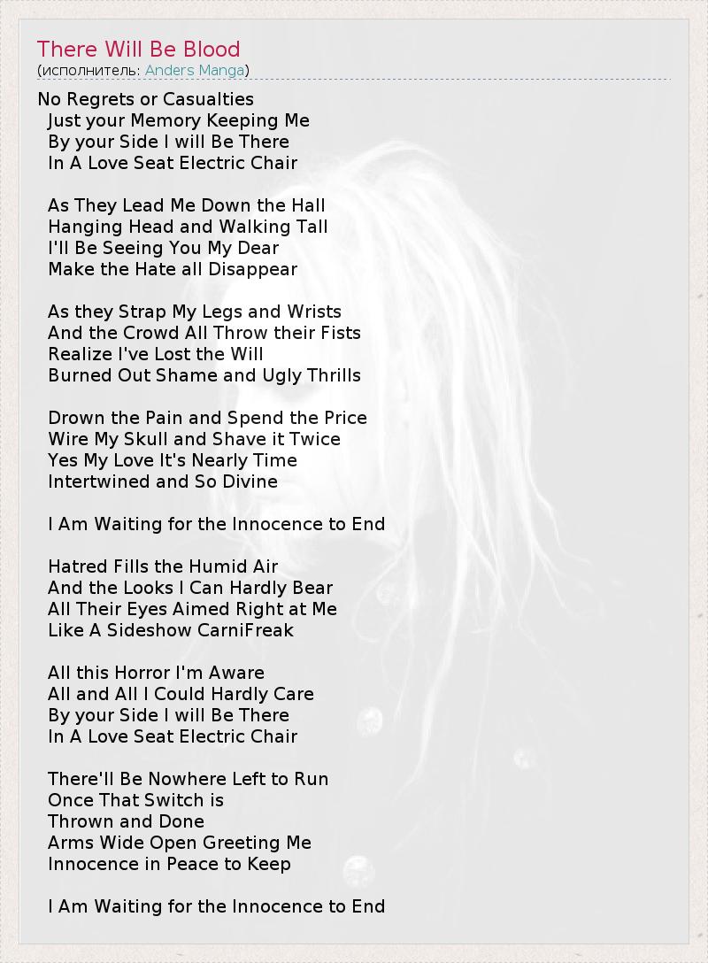 А как ты думаешь, о чем песня "There Will Be Blood" ?