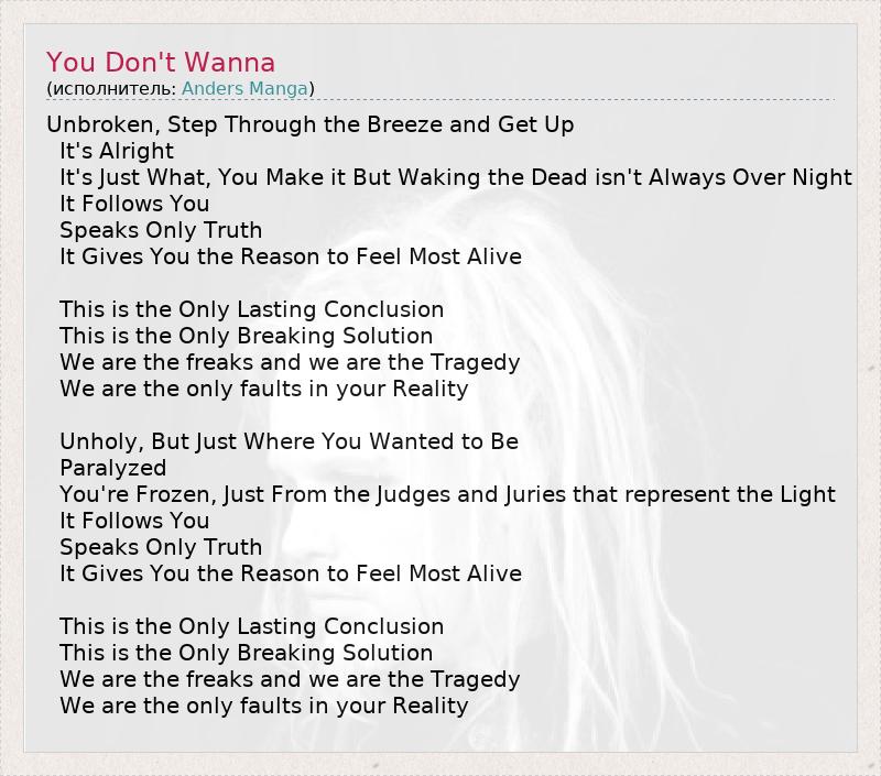 А как ты думаешь, о чем песня "You Don't Wanna" ?