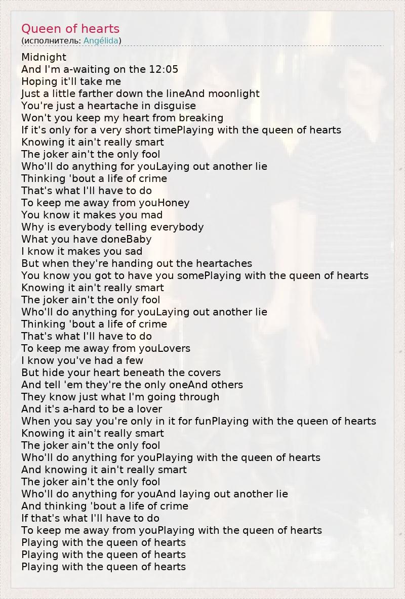 А как ты думаешь, о чем песня "Queen of hearts" ?