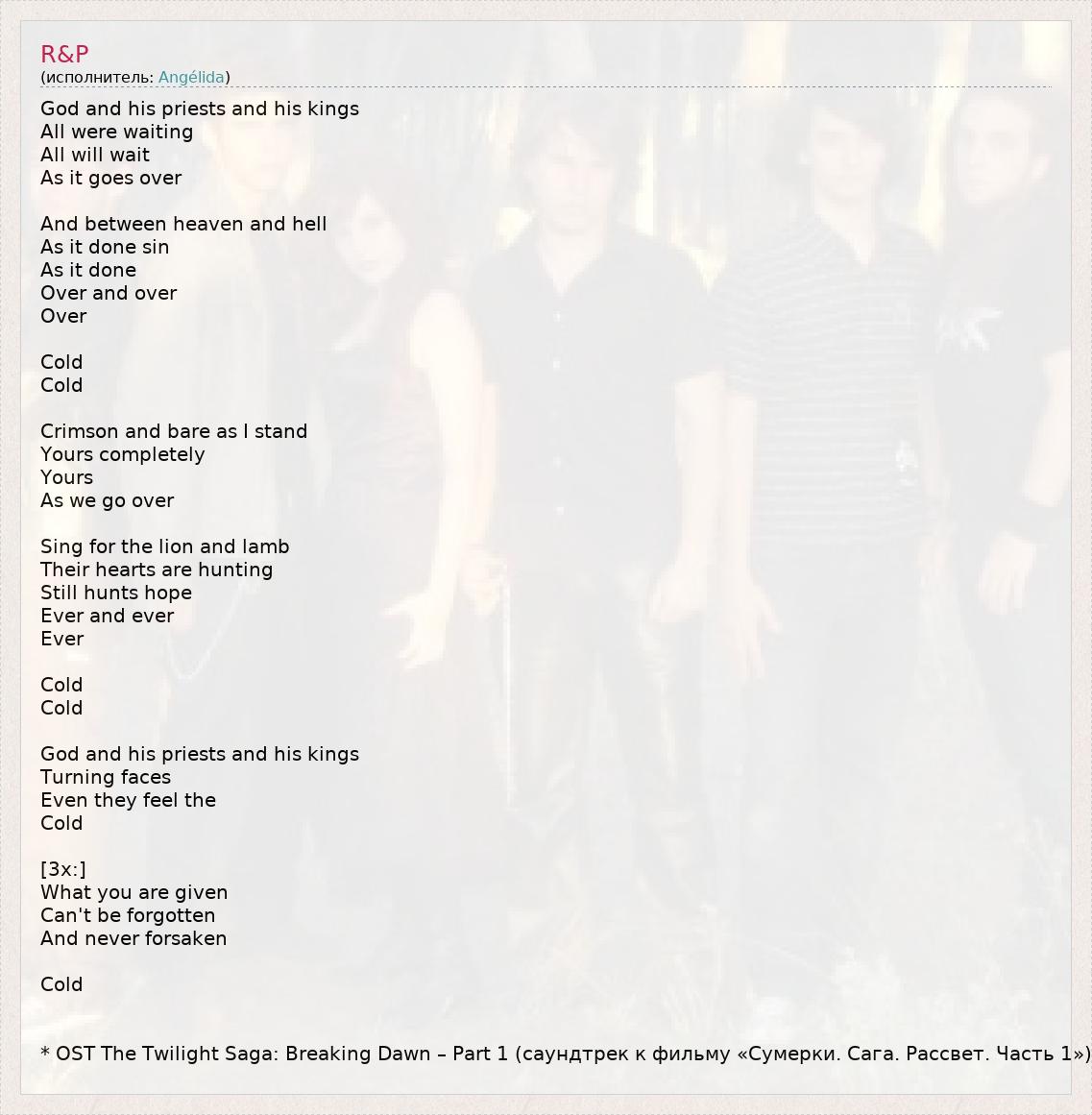 * OST The Twilight Saga: Breaking Dawn – Part 1 (саундтрек к фильму «Сумерки. Сага. Рассвет. Часть 1»)