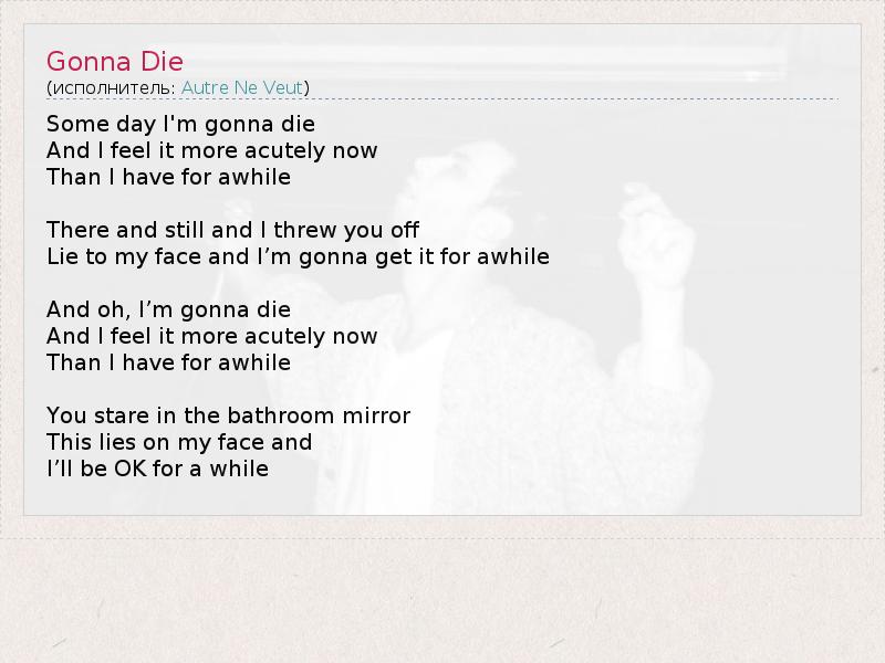 А как ты думаешь, о чем песня "Gonna Die" ?