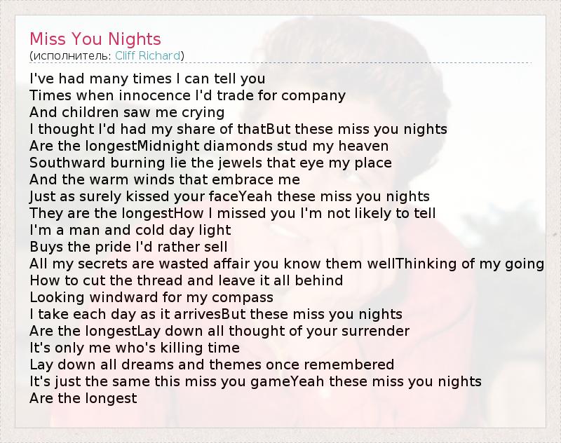 А как ты думаешь, о чем песня "Miss You Nights" ?