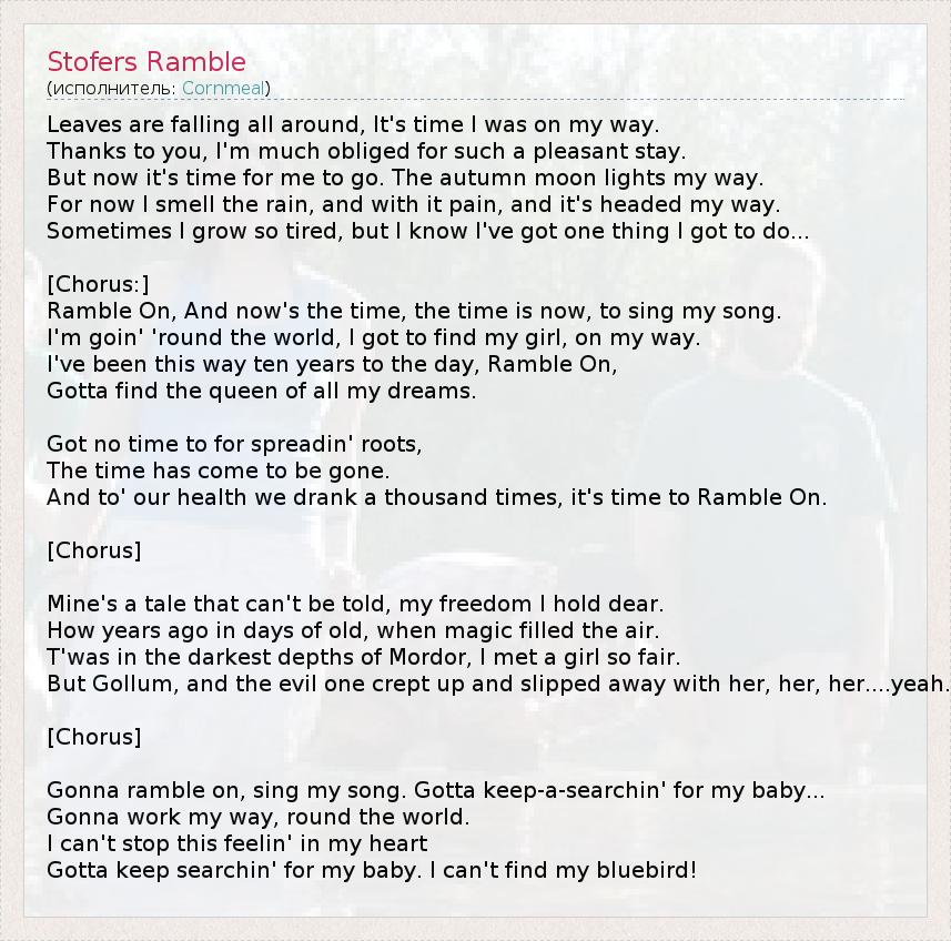 Ramble On, And now's the time, the time is now, to sing my song.