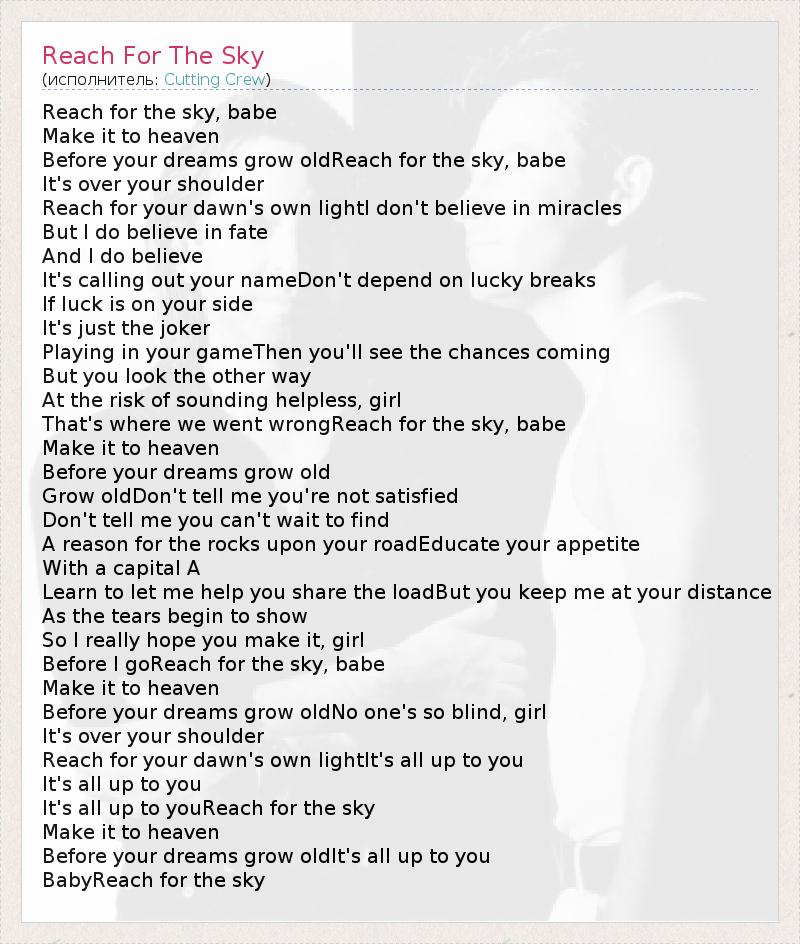 А как ты думаешь, о чем песня "Reach For The Sky" ?