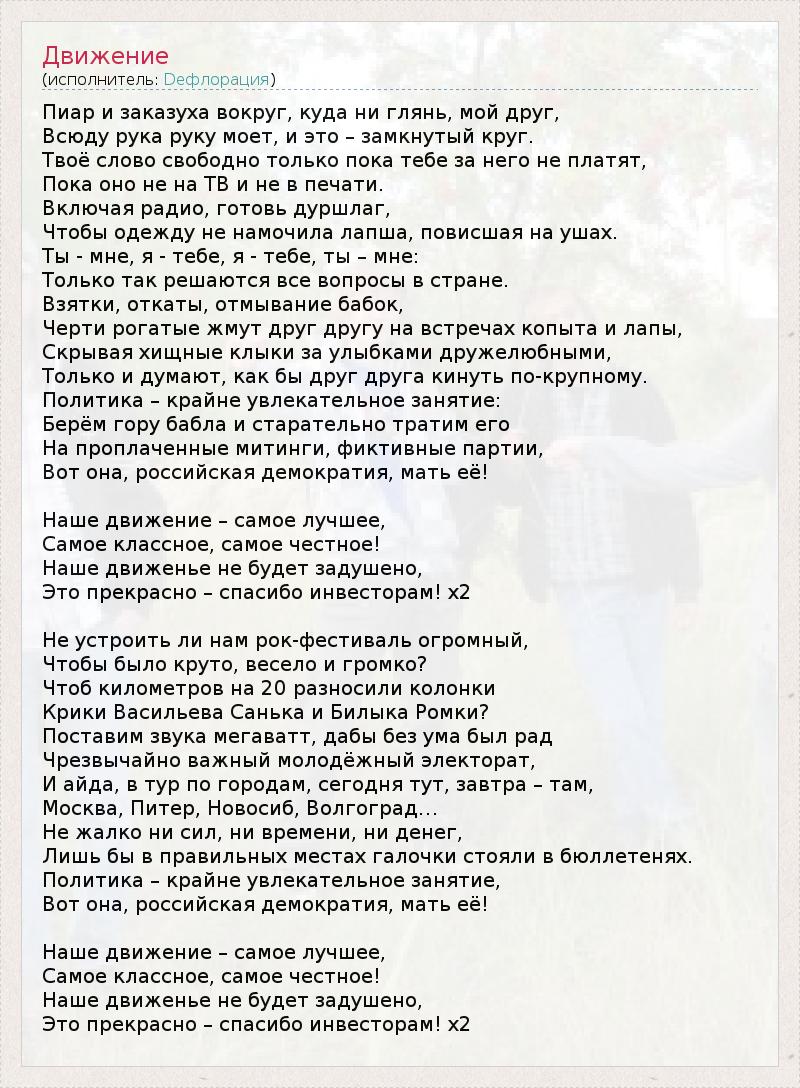 А как ты думаешь, о чем песня "Движение" ?