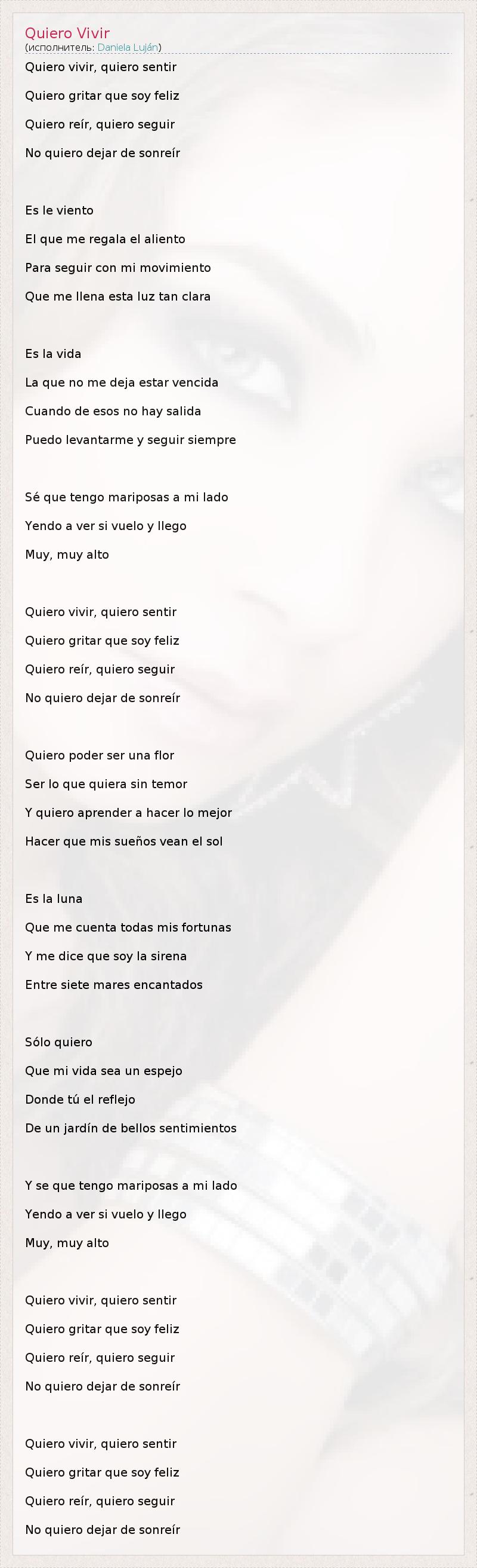 А как ты думаешь, о чем песня "Quiero Vivir" ?