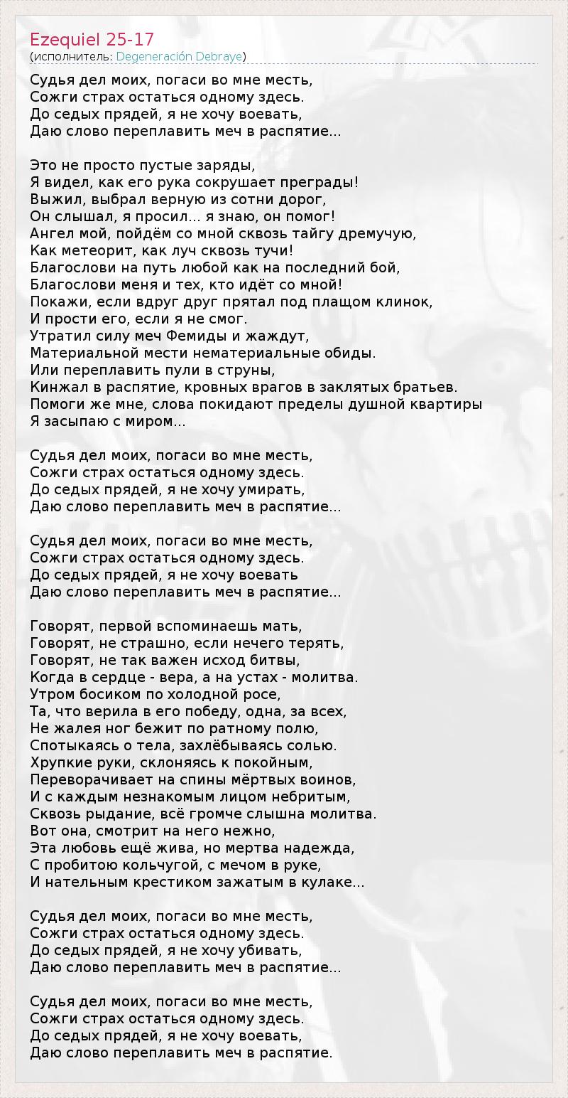 А как ты думаешь, о чем песня "Ezequiel 25-17" ?