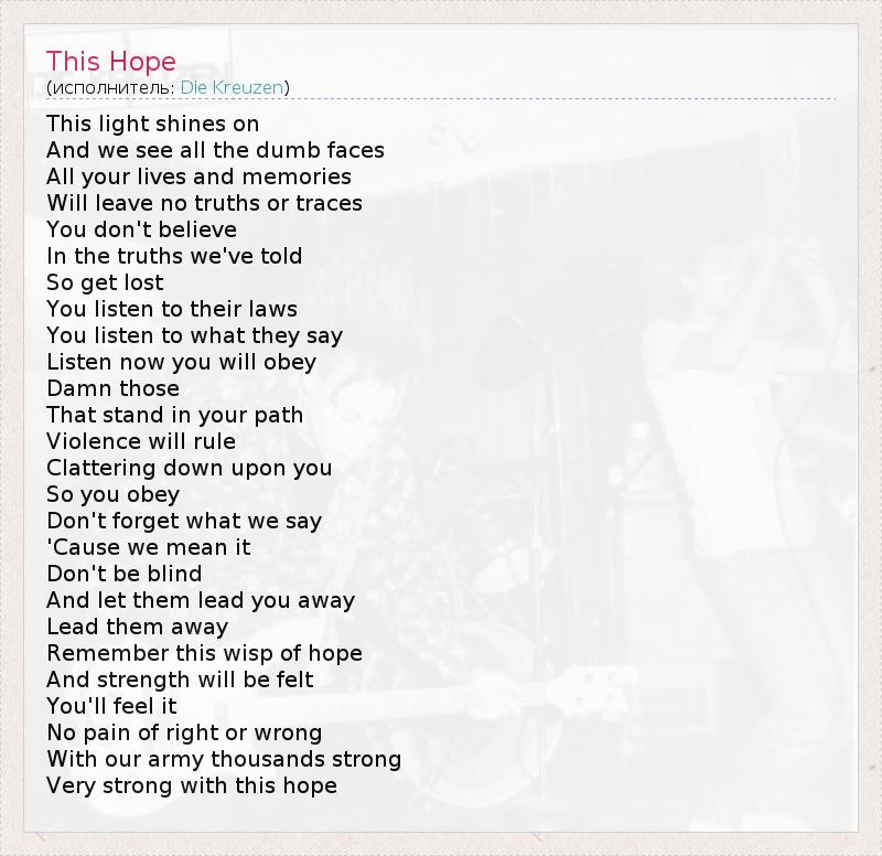 А как ты думаешь, о чем песня "This Hope" ?