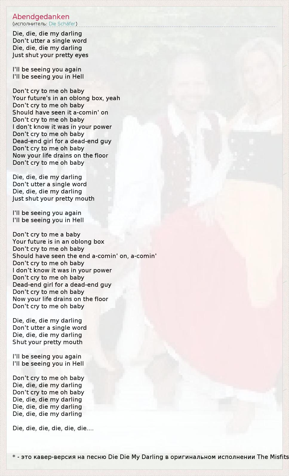 * - это кавер-версия на песню Die Die My Darling в оригинальном исполнении The Misfits