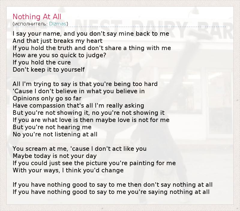 А как ты думаешь, о чем песня "Nothing At All" ?