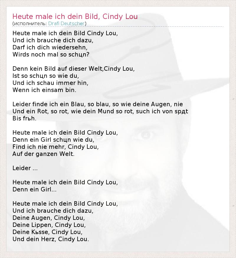 А как ты думаешь, о чем песня "Heute male ich dein Bild, Cindy Lou" ?
