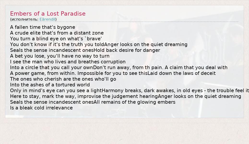 А как ты думаешь, о чем песня "Embers of a Lost Paradise" ?