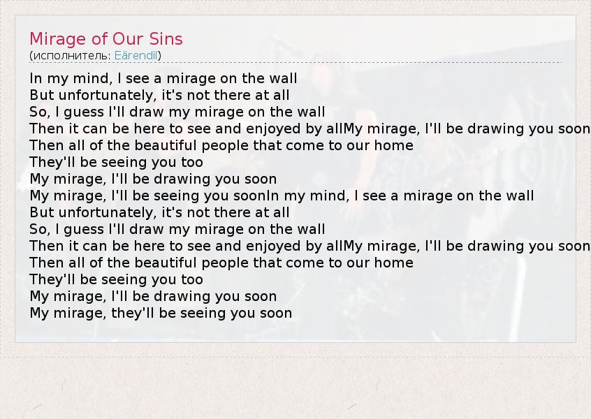 А как ты думаешь, о чем песня "Mirage of Our Sins" ?