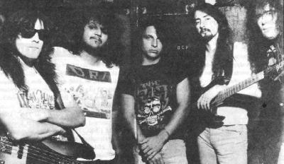 Группа EVIL DEAD появилась на свет "благодаря" фактическому распаду культовой спид-металлической команды AGENT STEEL. Ведь именно основатель EVIL DEAD Хуан Гарсия (Juan Garcia, ex-ABATTOIR) был основателем самих AGENT STEEL. К Хуану присоединился единомышленник в лице Мела Санчеса (Mel Sanchez, ex-ABATTOIR), который также был недоволен тем, как развивается его группа. К ним вскоре добавились ударник Роб Аланиз (Rob Alaniz, ex-NECROPHILIA) и гитарист Марк Каро (Mark Саго, ex-ABATTOIR), но после первых демо и одного выступления Каро сменил Алберт Гонзалес (Albert Gonzales). Первое же демо свежеиспеченной группы собрало огромную прессу по всему миру - буквально все прочили EVIL DEAD успешную карьеру, и поэтому спустя короткое время группа была буквально завалена предложениями от рекорд-компаний. Однако, вскоре состав группы был немного обновлен - Мел решил оставить вокальные упражнения и заняться исключительно игрой на бас-гитаре, а на место освобожденного вокалиста в конце 1987-го года был принят Фил Флорес (Phil Flores). Несмотря на тот факт, что выход альбома был запланирован на лето 1987-го года, первая студийная работа появилась в 1989-м году. Это был макси-сингл под названием 'Rise Above' и только спустя некоторое время вышел полноценный альбом 'Annihilation Of Civilization'. Эта произведение было исполнено под чутким руководством продюсера Кэйси МакМаккина (Casey McMackin, MEGADETH) и выпущено под эгидой SPV America. Практически все тексты к альбому написал сам Хуан Гарсия, и на этот раз сюжеты были построены не на абстрактных фантазиях, а на жестокой реальности жизни, с музыкальной же стороны этот альбом был оценен многими критиками как "thrash as thrash can be", поскольку это был сырой, брутальный, первозданный thrash-metal. Несмотря на столь лестные отзывы, в группе наметился раскол - Хуан посчитал, что Альберт совершенно перестал интересоваться группой и выставил его за дверь без лишних слов. Такое положение дел совершенно не устроило Роба, который был хорошим другом Гонзалеса, и он сам хлопнул дверью. На места выбывших друзей были срочно взяты ударник Даг Клоусон (Doug Clawson, ex-SANCTUM) и гитарист Дэн Флорес (Dan Flores). He успела утрястись эта скандальная история, как из группы ушел один из отцов-основателей - Мел Санчес, который заявил, что он не видит смысла в этой музыке и собирается заняться другим делом. В данный момент о нем известно лишь то, что он играет блюз в какой-то малоизвестной группе, а тогда на его место был рекрутирован Карлос Медина (Karlos Medina, ех-SANCTUM). Так или иначе, но в 1990-м году группа оказалась до такой степени развалена, что когда Чак Шульдинер (Chuck Schuldiner, DEATH) пригласил Хуана в свою группу, тот посоветовал Чаку обратиться с этим предложением к Альберту. Про Роба и Альберта известно лишь то, что они играют в группе под названием RISE и выпустили один альбом. Тем не менее, к 1991-му году Хуан Гарсия, что называется, собрался с силами, и EVIL DEAD выпускают альбом под названием 'The Underworld'. В поддержку этого альбома было запущено европейское турне вместе с LAAZ ROCKIT в 1992-м году, результатом чего стал концертный альбом под названием 'Live… From The Depths Of The Underworld', причем на концертном альбоме уже отсутствует Даг, а за ударной установкой восседает некий Джо Монтелонго (Joe Montelongo). После этого альбома фэны начали с нетерпением ожидать нового, но Хуан вдруг резко изменил свой взгляд на музыку. Он заявил, что металл мертв и теперь, поскольку в группе играют практически испаноязычные музыкант