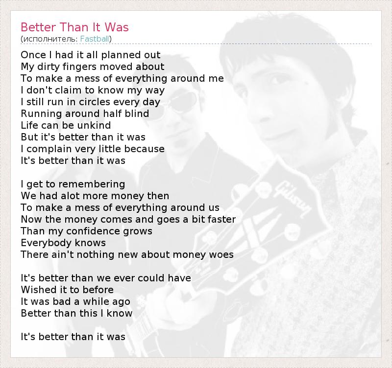 А как ты думаешь, о чем песня "Better Than It Was" ?