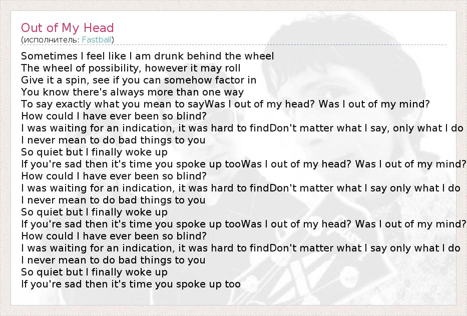 А как ты думаешь, о чем песня "Out of My Head" ?