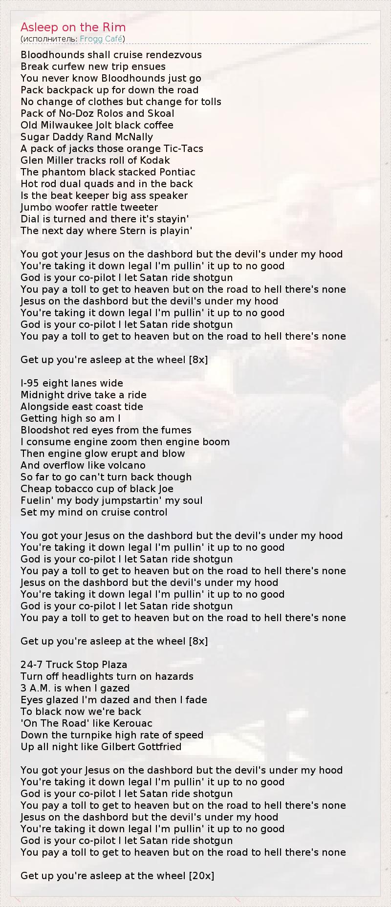 А как ты думаешь, о чем песня "Asleep on the Rim" ?