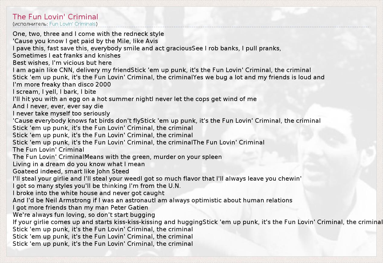 А как ты думаешь, о чем песня "The Fun Lovin' Criminal" ?