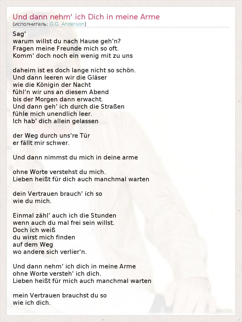 А как ты думаешь, о чем песня "Und dann nehm' ich Dich in meine Arme" ?
