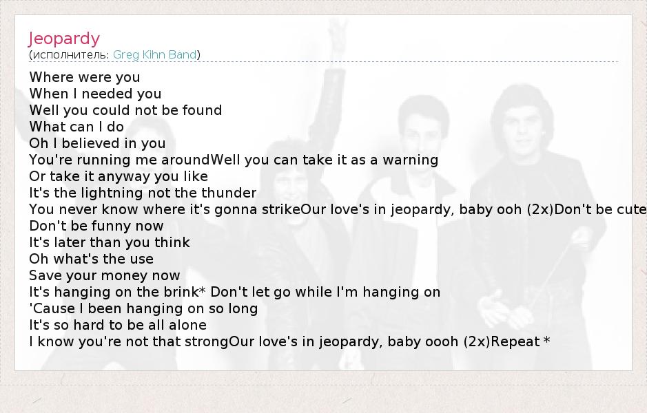 А как ты думаешь, о чем песня "Jeopardy" ?