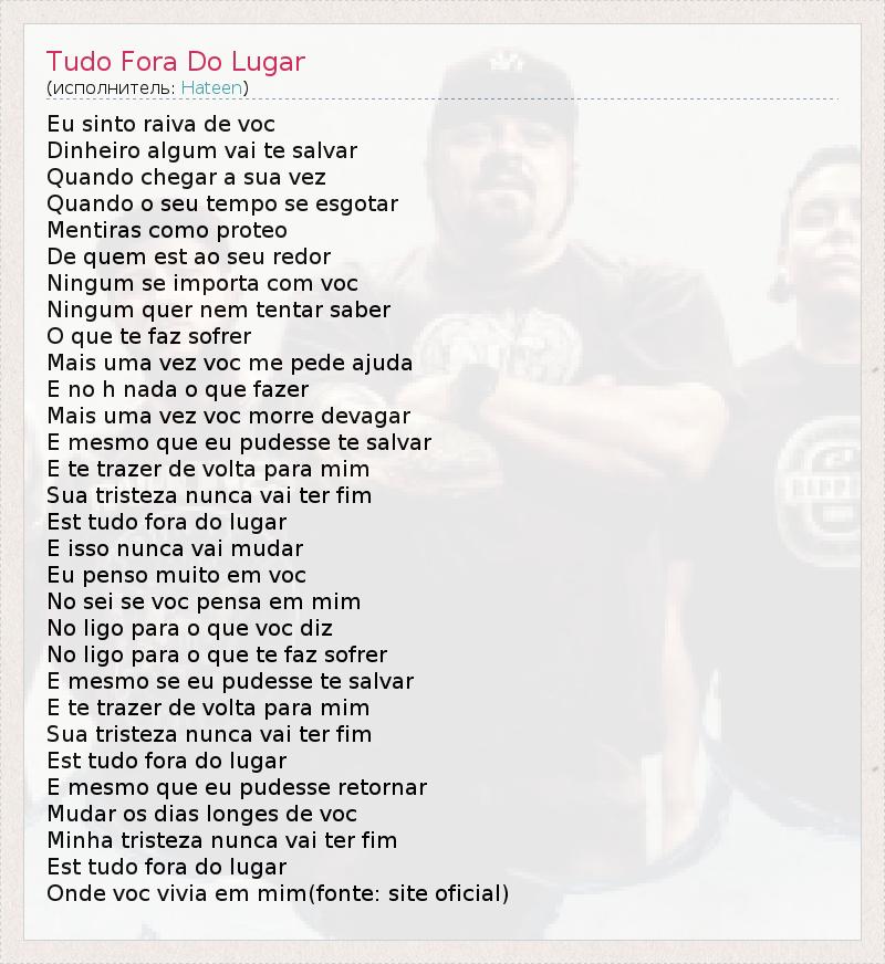 А как ты думаешь, о чем песня "Tudo Fora Do Lugar" ?