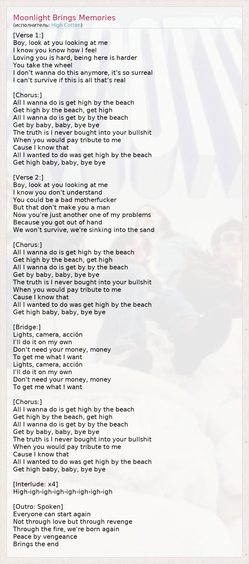 А как ты думаешь, о чем песня "Moonlight Brings Memories" ?