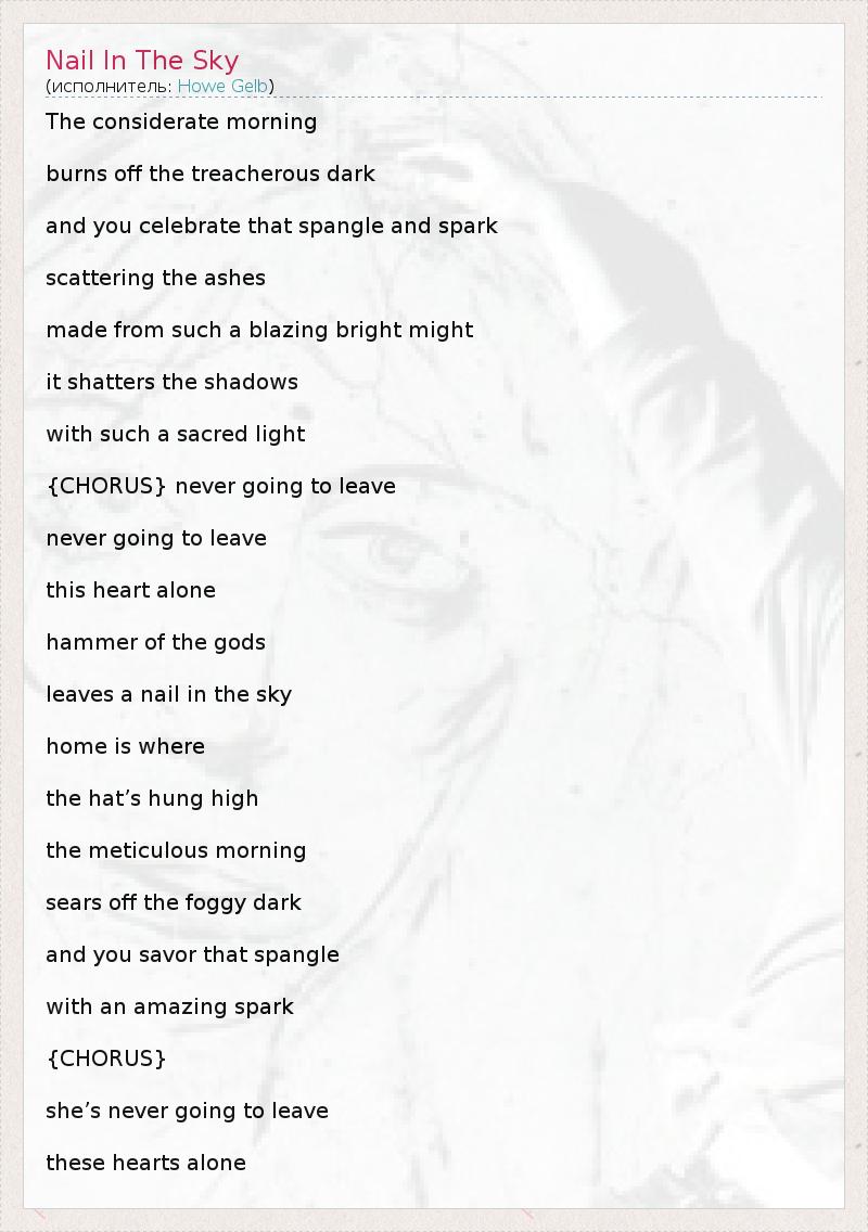А как ты думаешь, о чем песня "Nail In The Sky" ?