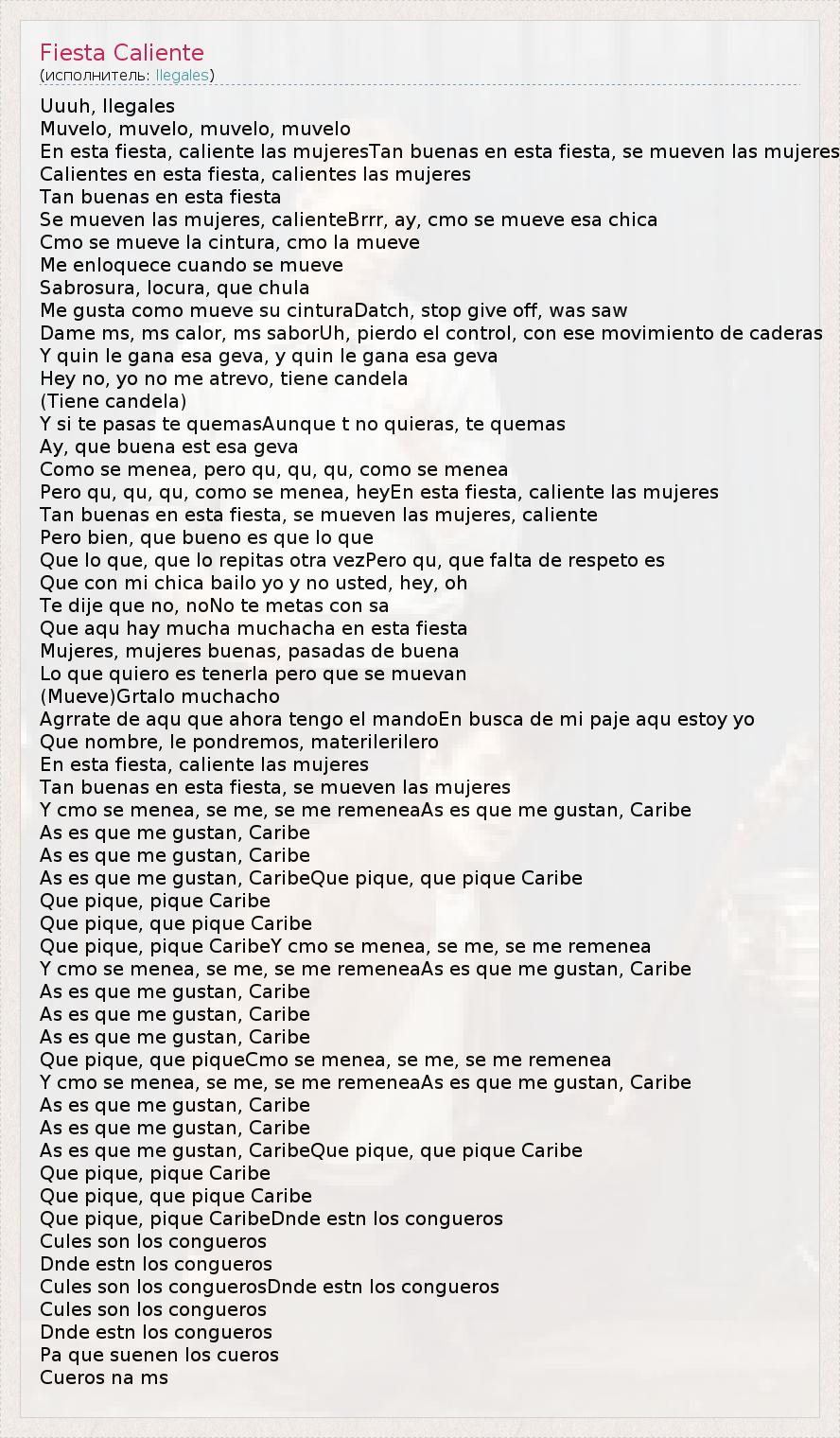 А как ты думаешь, о чем песня "Fiesta Caliente" ?