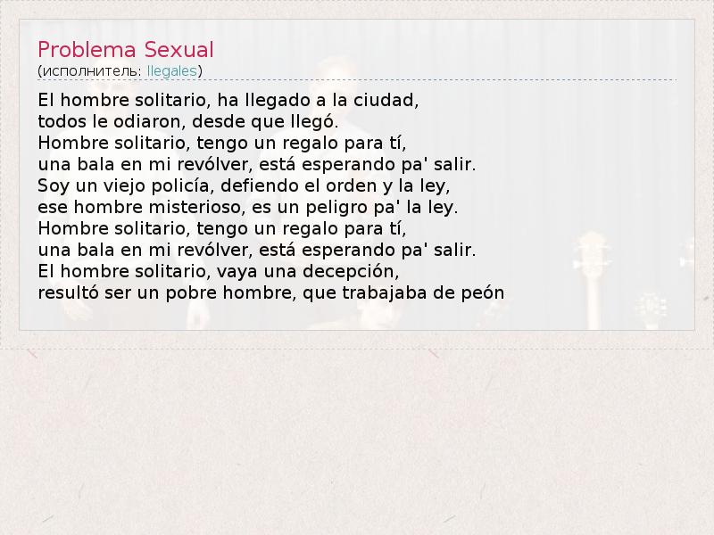 А как ты думаешь, о чем песня "Problema Sexual" ?