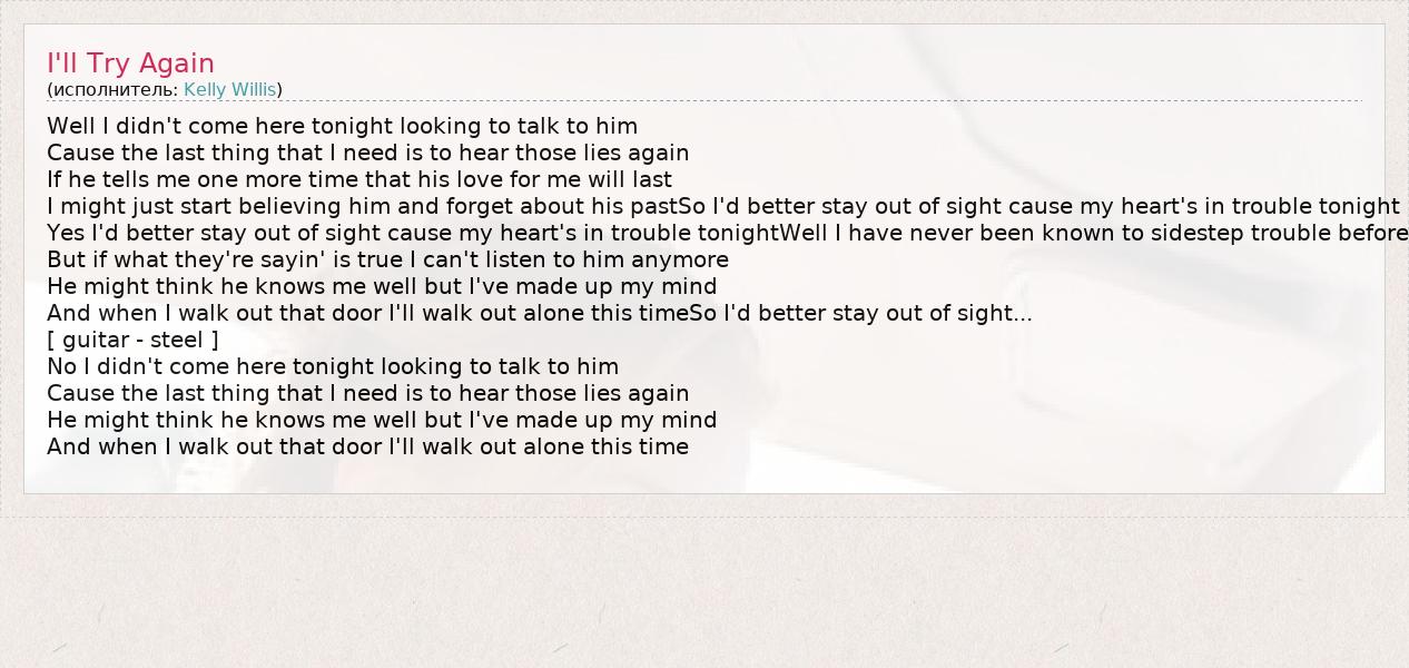 А как ты думаешь, о чем песня "I'll Try Again" ?