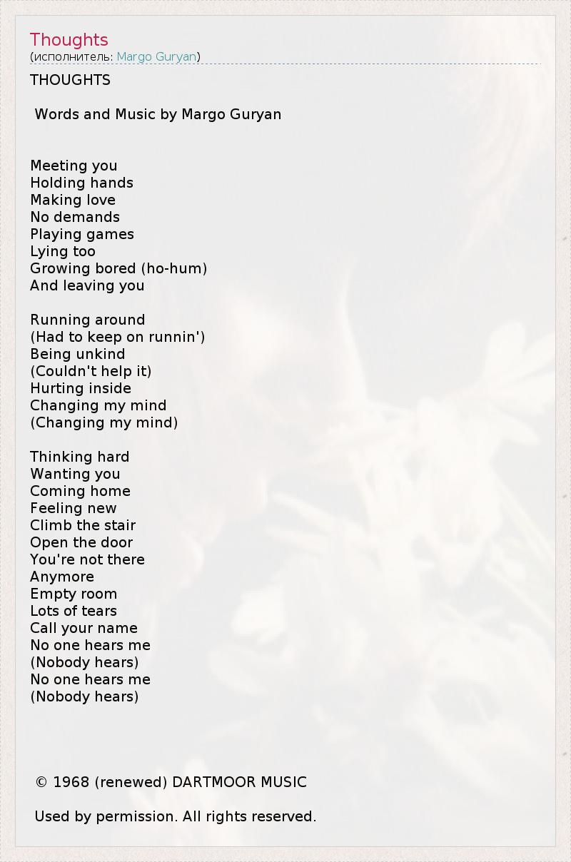 А как ты думаешь, о чем песня "Thoughts" ?