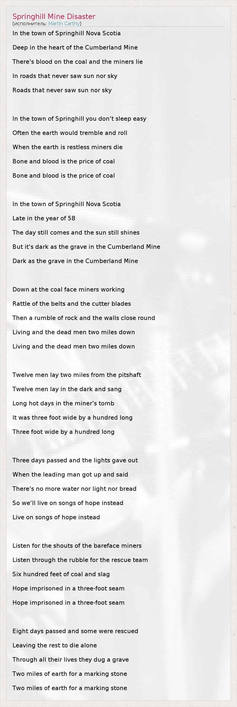 ГлавнаяИсполнителиMartin CarthySpringhill Mine Disaster