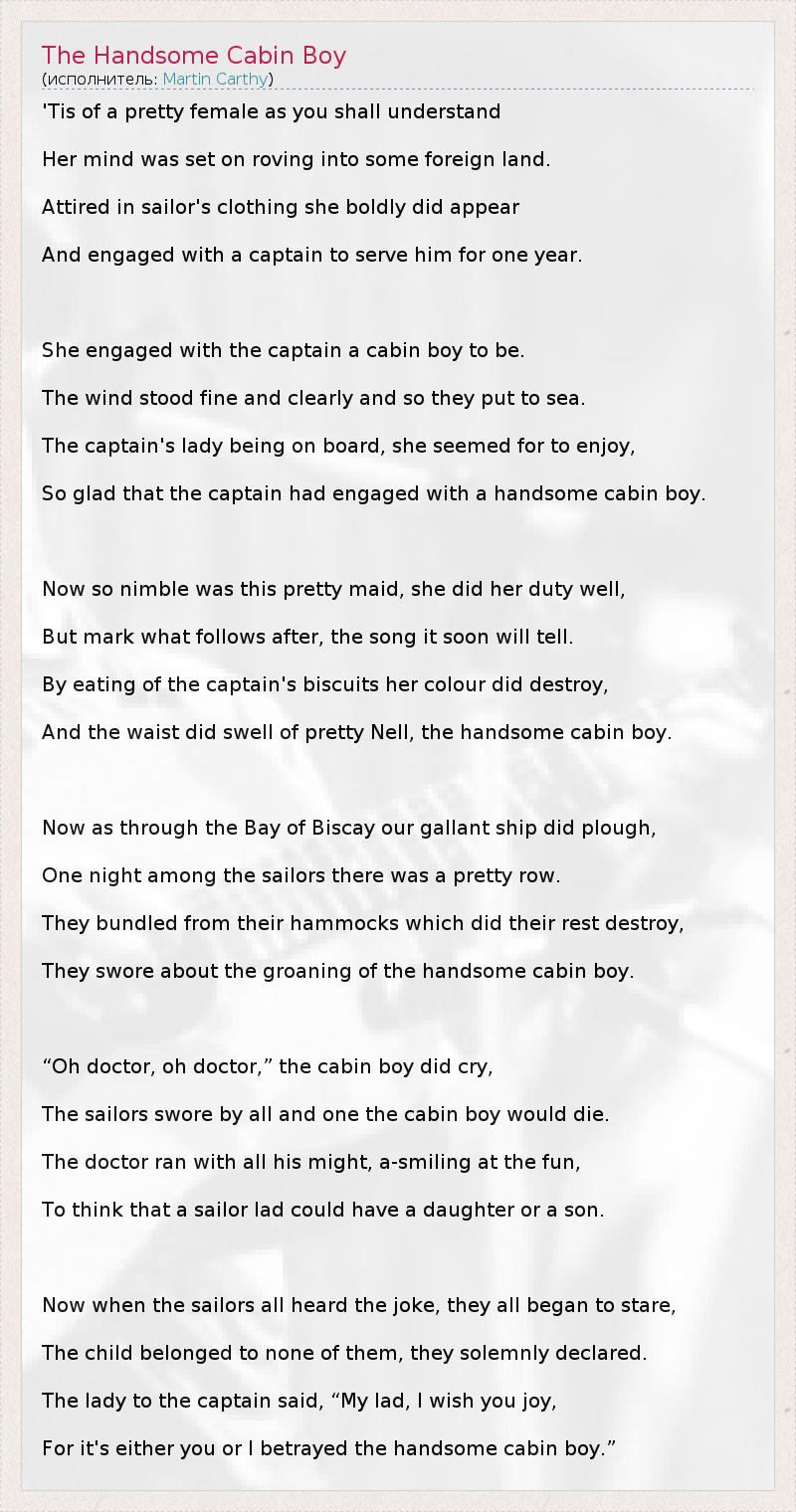 А как ты думаешь, о чем песня "The Handsome Cabin Boy" ?