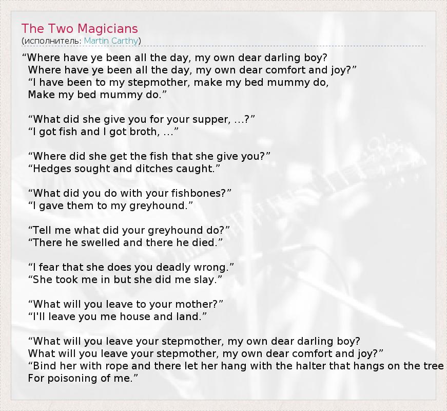 А как ты думаешь, о чем песня "The Two Magicians" ?