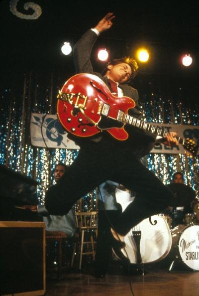Легендарная песня "Johnny B.Good" из первой части фильма "Назад в будущее". Полная версия. В фильме в конце композиции Марти МакФлай срывается на тяжелую импровизацию и третий куплет срывается.