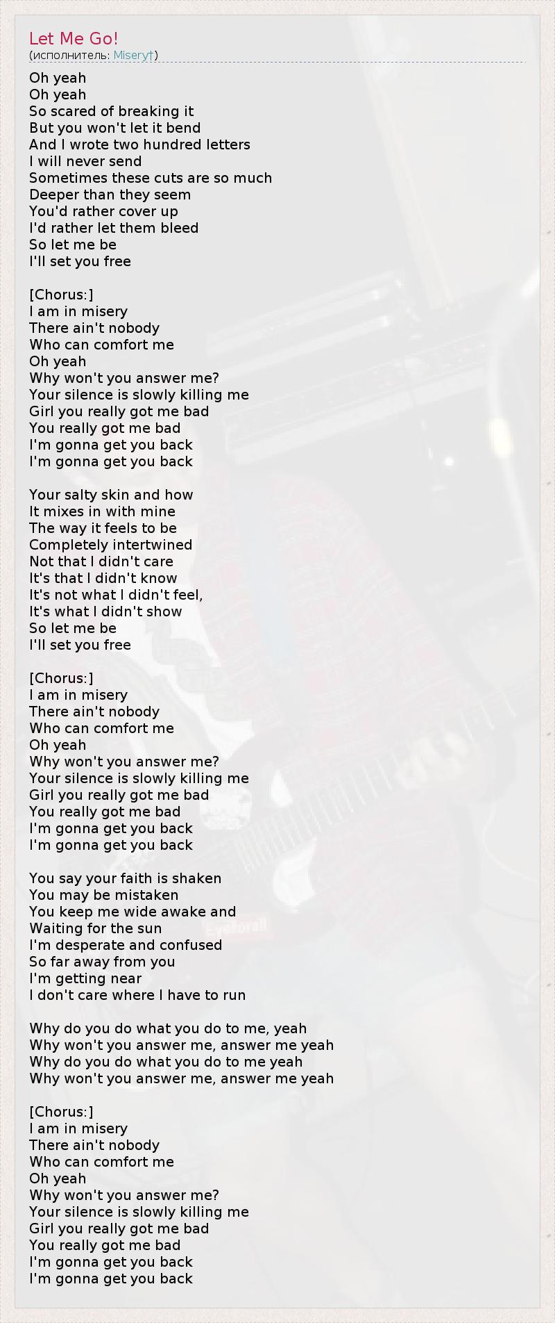 А как ты думаешь, о чем песня "Let Me Go!" ?
