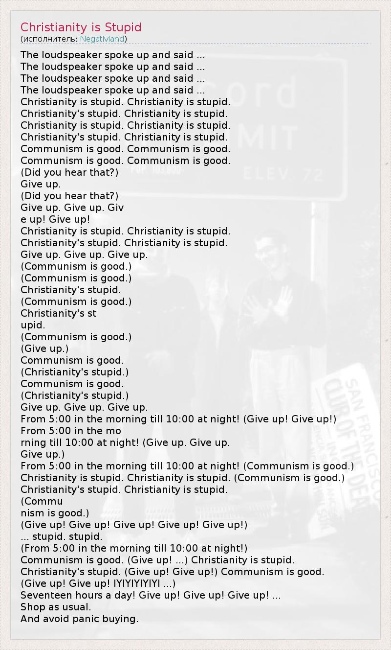 А как ты думаешь, о чем песня "Christianity is Stupid" ?