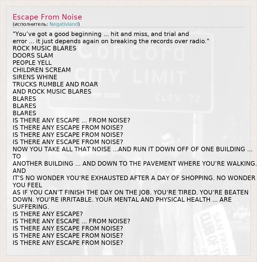 А как ты думаешь, о чем песня "Escape From Noise" ?