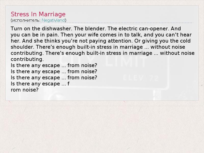 А как ты думаешь, о чем песня "Stress In Marriage" ?