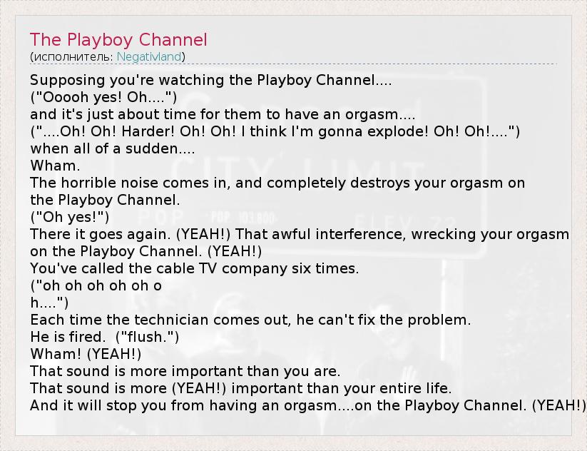 А как ты думаешь, о чем песня "The Playboy Channel" ?