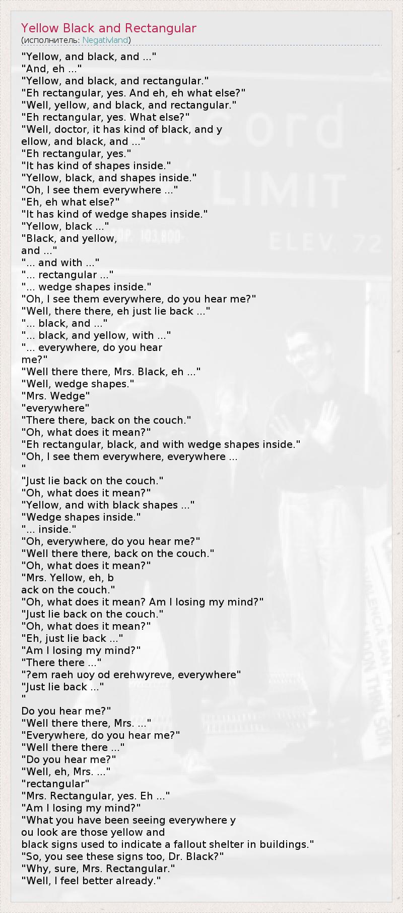 А как ты думаешь, о чем песня "Yellow Black and Rectangular" ?
