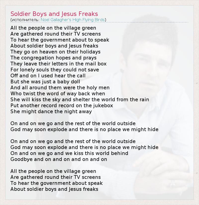 А как ты думаешь, о чем песня "Soldier Boys and Jesus Freaks" ?