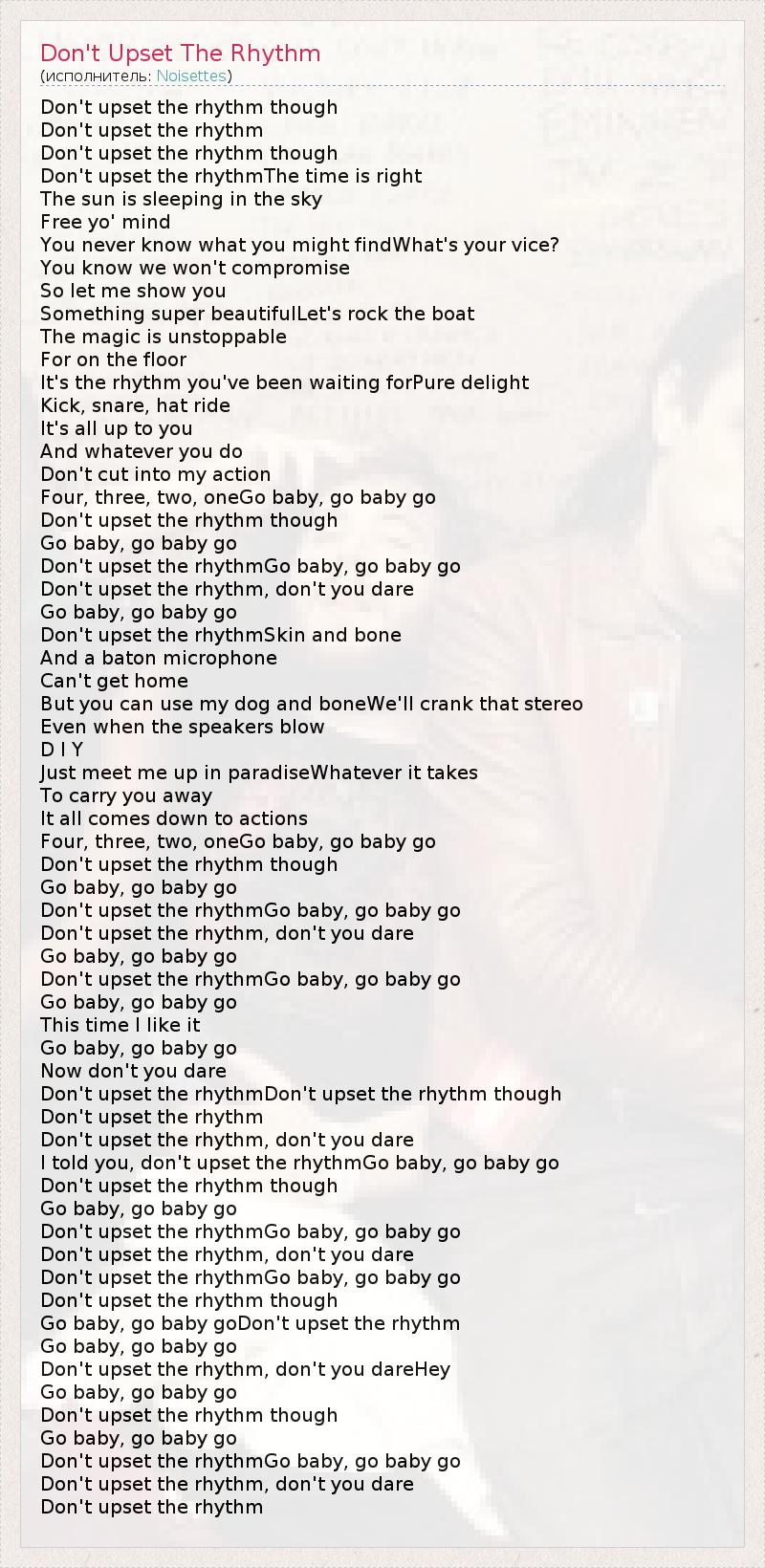 А как ты думаешь, о чем песня "Don't Upset The Rhythm" ?