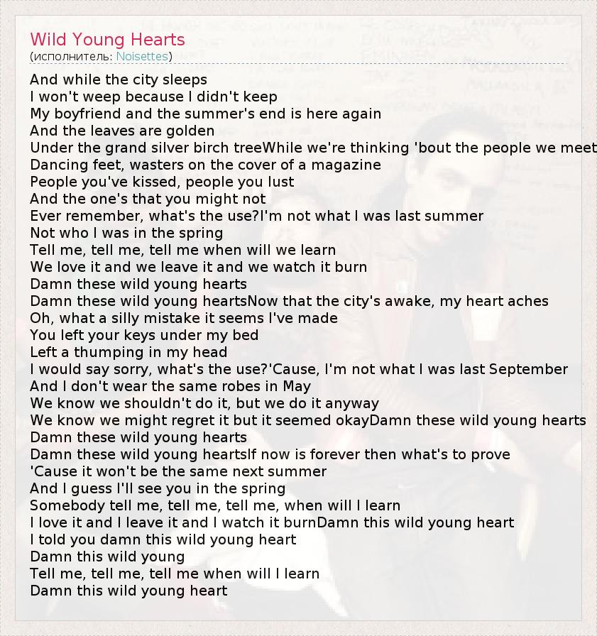 А как ты думаешь, о чем песня "Wild Young Hearts" ?
