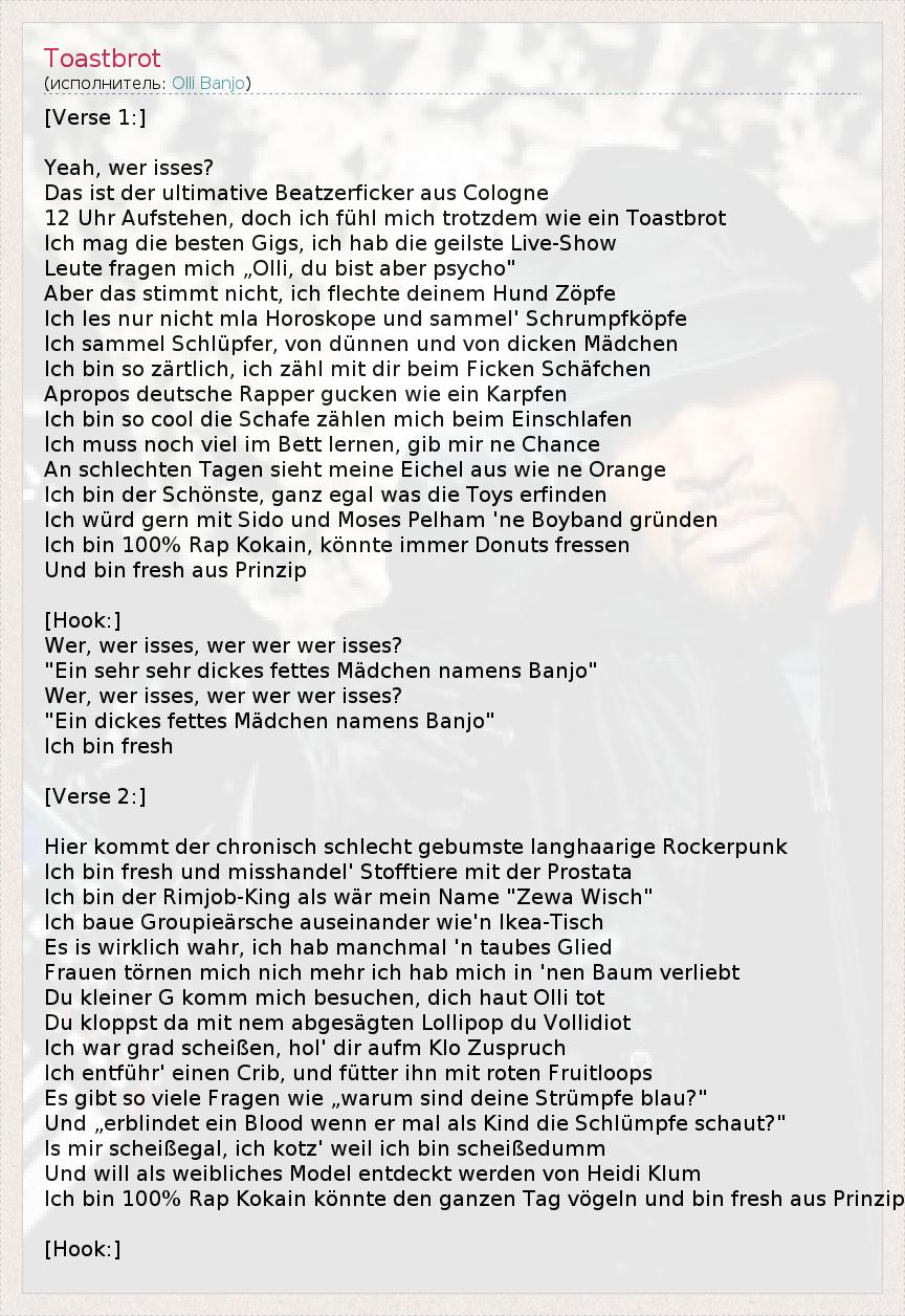 А как ты думаешь, о чем песня "Toastbrot" ?
