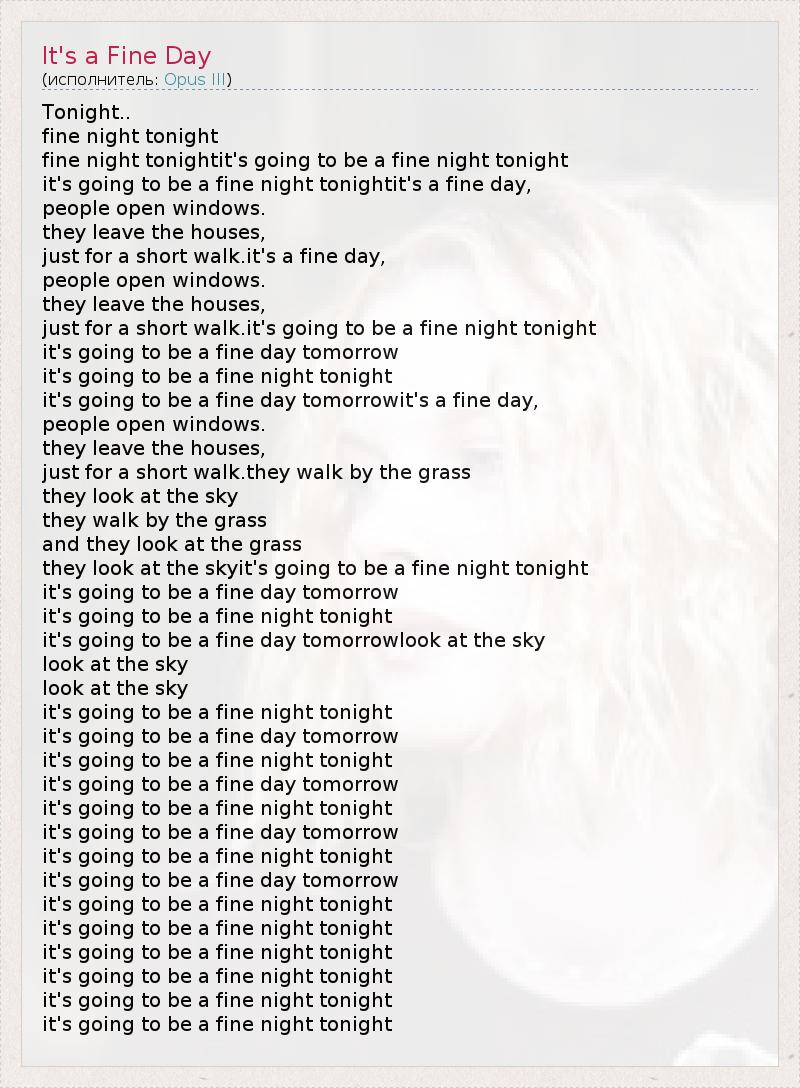 А как ты думаешь, о чем песня "It's a Fine Day" ?