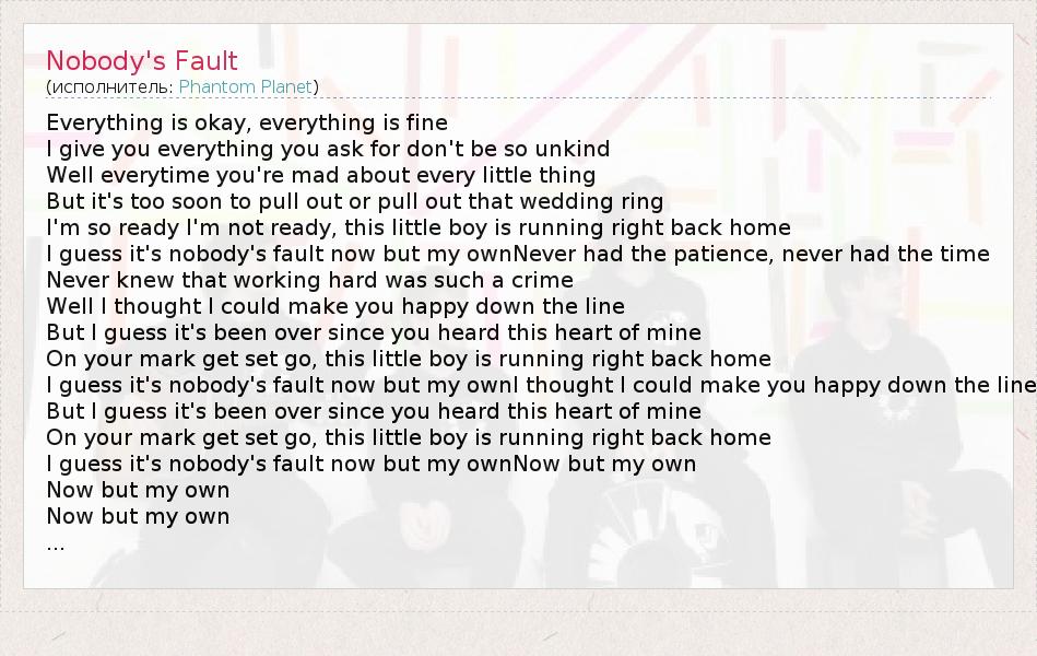 А как ты думаешь, о чем песня "Nobody's Fault" ?