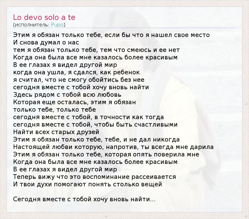 А как ты думаешь, о чем песня "Lo devo solo a te" ?